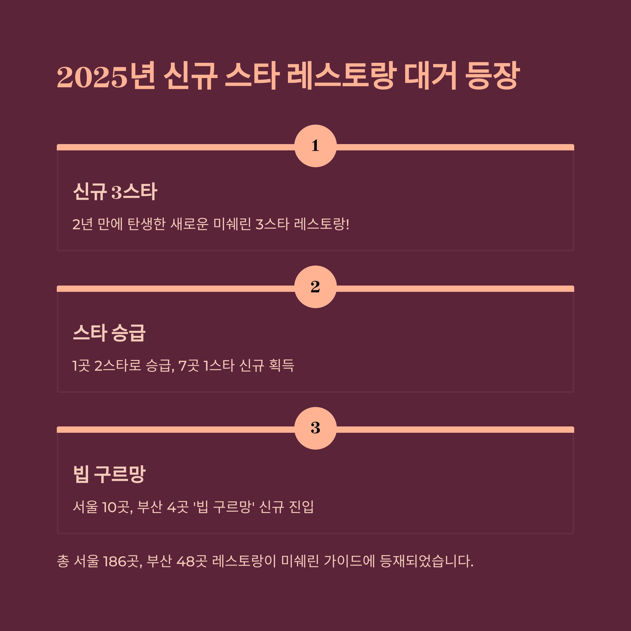 글로벌 미쉐린 가이드는 세계적으로 인정받는 레스토랑 평가 지침서로, 각 도시의 빛나는 미식 문화를 드러냅니다. 2025년 미쉐린 가이드에서 한국은 서울을 중심으로 186곳의 레스토랑이 선정되었고, 이는 미식 산업의 중요한 전환점을 반영합니다. 특히, '밍글스'는 이번에 3스타를 획득하며 미식계의 새로운 얼굴로 자리 잡았습니다. 이곳의 정교한 요리는 한국의 전통과 현대가 어우러져 뛰어난 요리로 평가받고 있습니다. 또, 부산의 경우 신규 1스타 레스토랑이 출현하며, 이 지역의 잠재력을 새롭게 일깨우고 있습니다. 이러한 결과는 지역 미식가들에게 큰 자부심이 될 뿐만 아니라, 세계적인 미식 관광객의 발길을 이끄는 요소가 됩니다. 😊