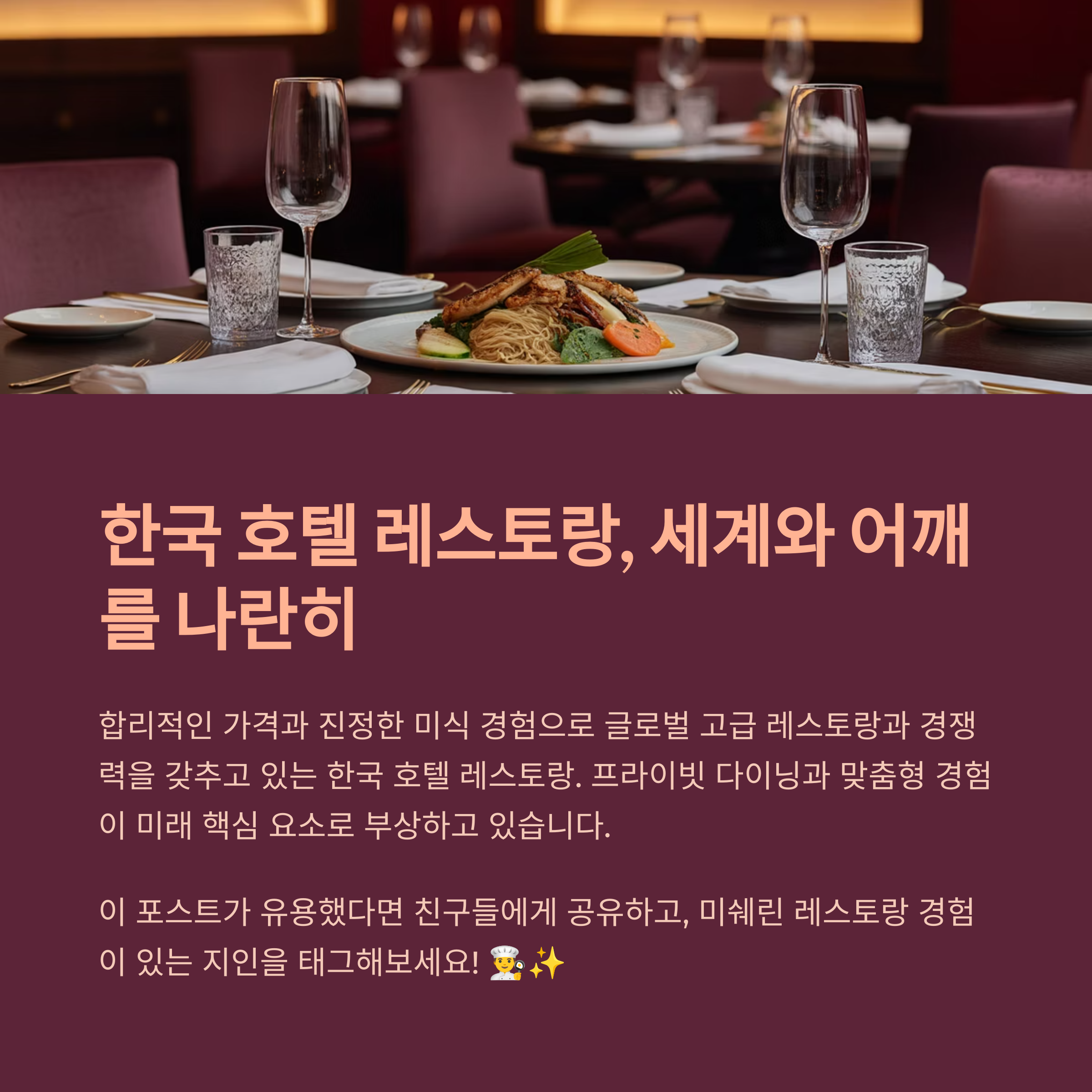미쉐린 가이드에서 밝혀진 수치들은 전 세계 미식 경험의 깊이를 더하는 데 한몫하고 있어요. 예를 들어, 한국에서는 단 하나의 3스타 레스토랑이 존재하지만, 일본 도쿄는 3스타 레스토랑이 10곳 이상이라고 하네요. 이처럼 도시별로 다양한 미묘한 차이가 있는데, 예약률도 주말 기준으로 80~95%에 달할 만큼 높은 편입니다. 이러한 수치는 호텔 내 럭셔리 레스토랑이 얼마나 인기가 많은지를 보여주고 있고, 가격적인 면에서도 파리는 평균 50~85만 원, 도쿄는 30만~60만 원으로 한국보다 높지만, 그만큼의 가치를 제공하고 있다는 것을 알 수 있습니다. 이런 점에서 미쉐린 2스타 이상의 한국 내 평균 가격이 런치 기준 약 15만 원, 디너 25만 원이라는 점은 가격 대 성능비를 중요시하는 고객에게 큰 매력으로 다가올 수 있겠죠.😊