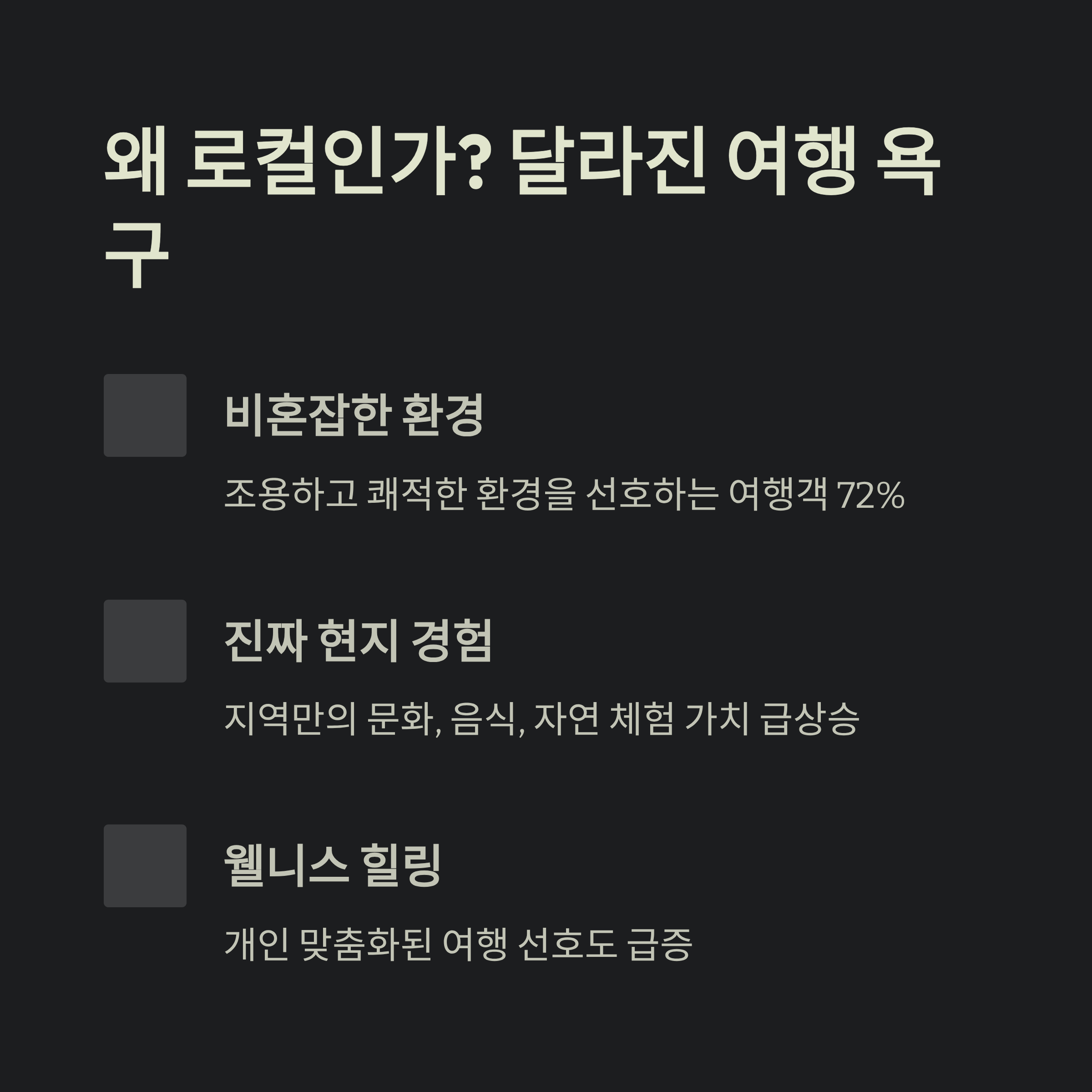 2025년에는 로컬리즘 여행의 인기 요인 역시 수치로 증명됩니다. 수많은 설문조사와 데이터가 이 흐름을