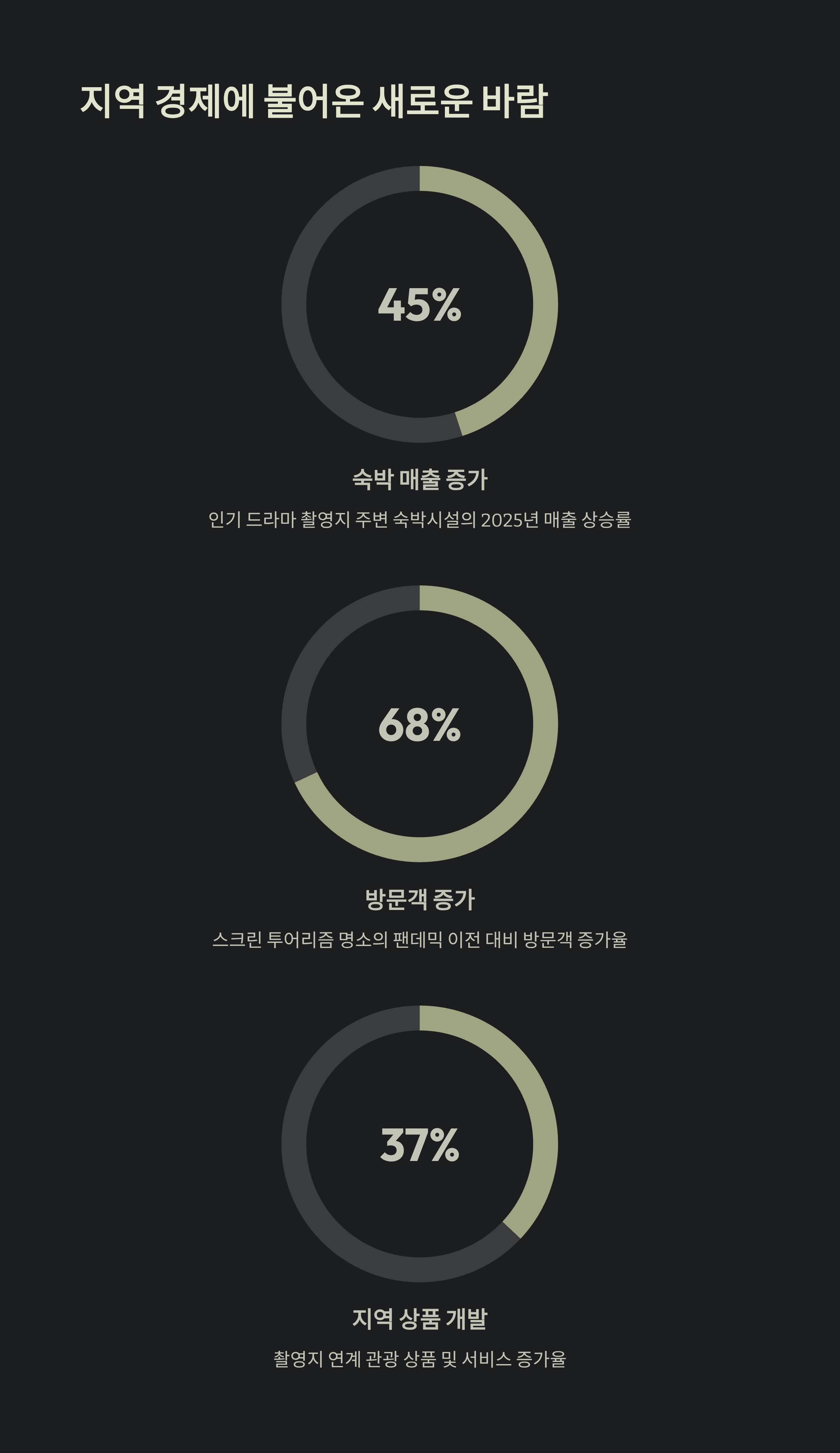 스크린 투어리즘이 현지 경제에 미치는 영향은 큽니다. 팬데믹 이후 많은 관광객들이 돌아다니면서, 숨겨진 명소의 인기가 상승했어요. 그래서 이들 지역에서는 관람객을 위해 숙박시설의 개선이 빠르게 진행됐고,