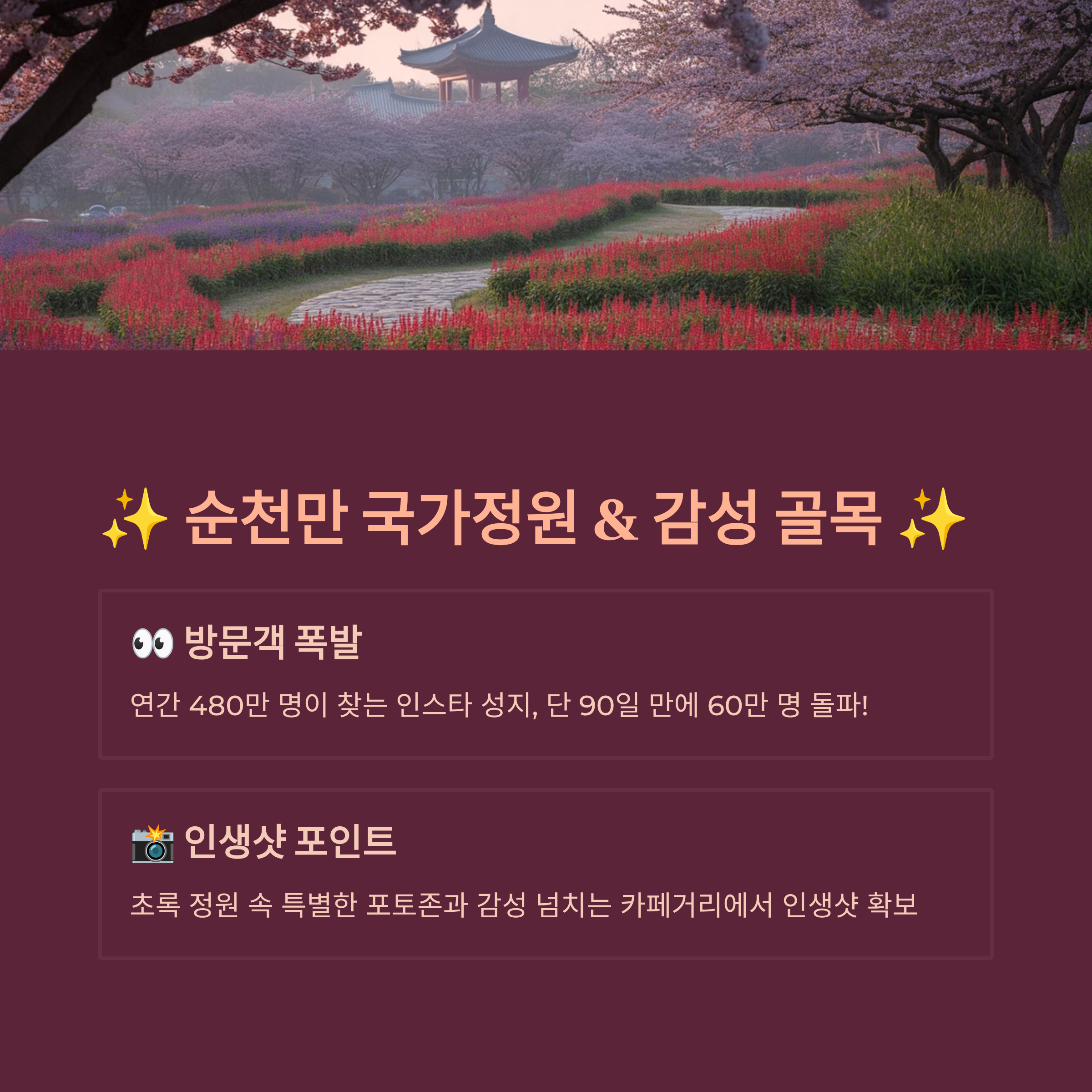 1. 전남 순천 – 순천만 국가정원 & 감성 골목