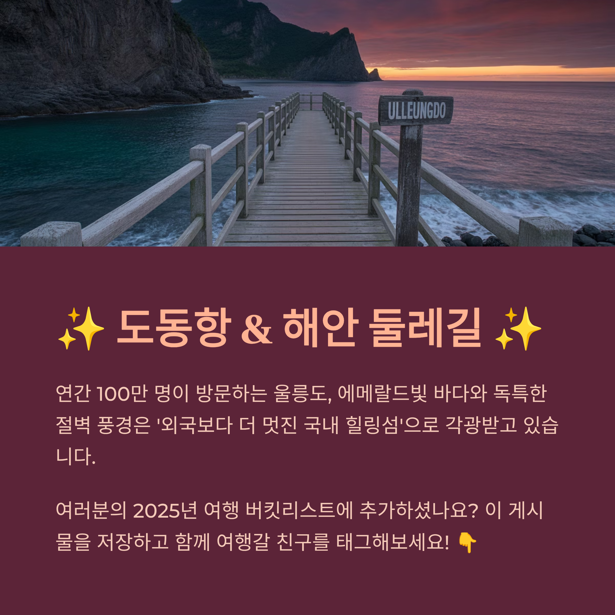 | 도동항 | 연간 90만 | 해양 촬영 명소 |