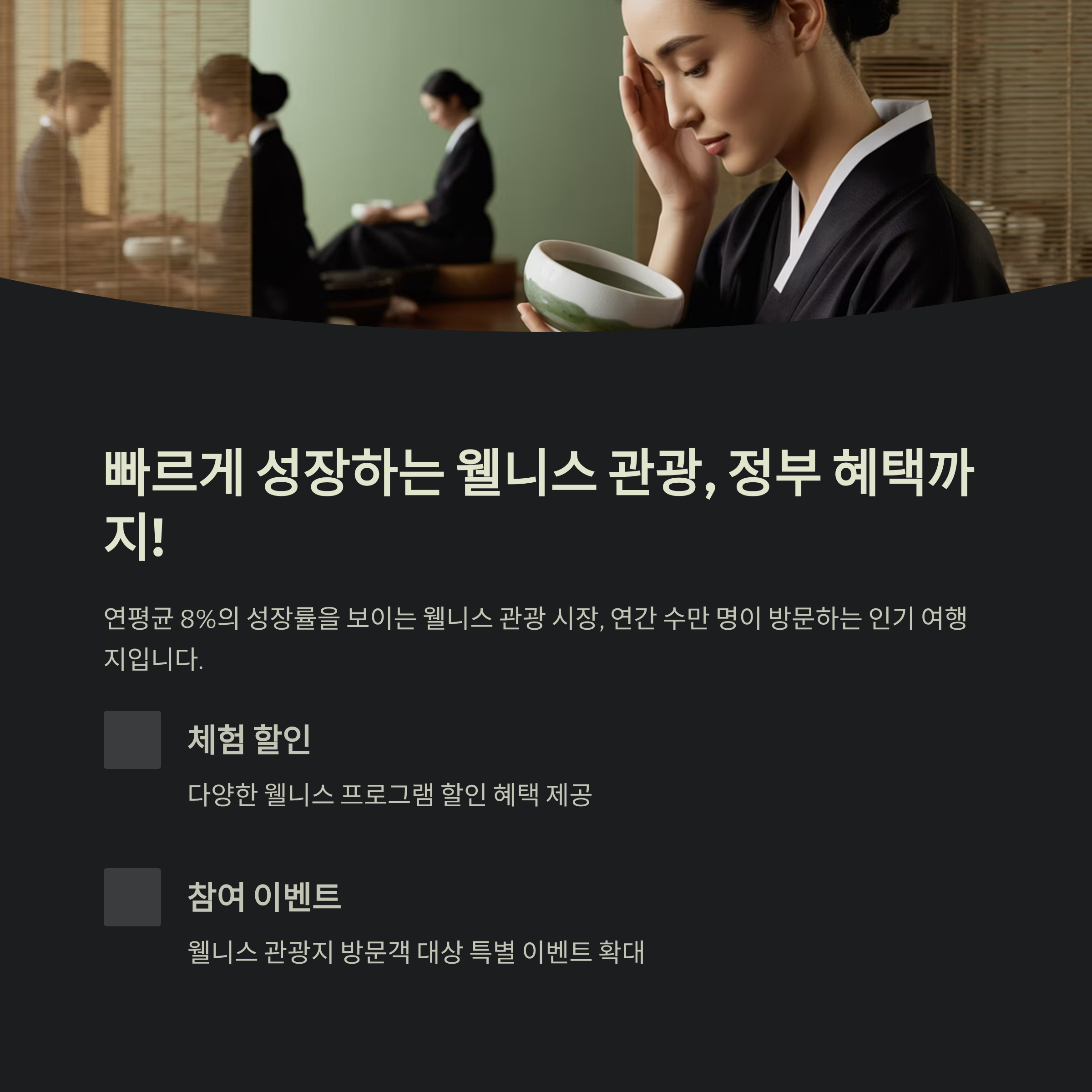 진화는 끝이 없네요. 예전엔 단순한 스파 정도였다면, 이제는 해조류 스파부터 피톤치드 삼림욕, 약쑥 체험까지! 이런 변화가 여행의 새로운 기준이 되다니, 정말