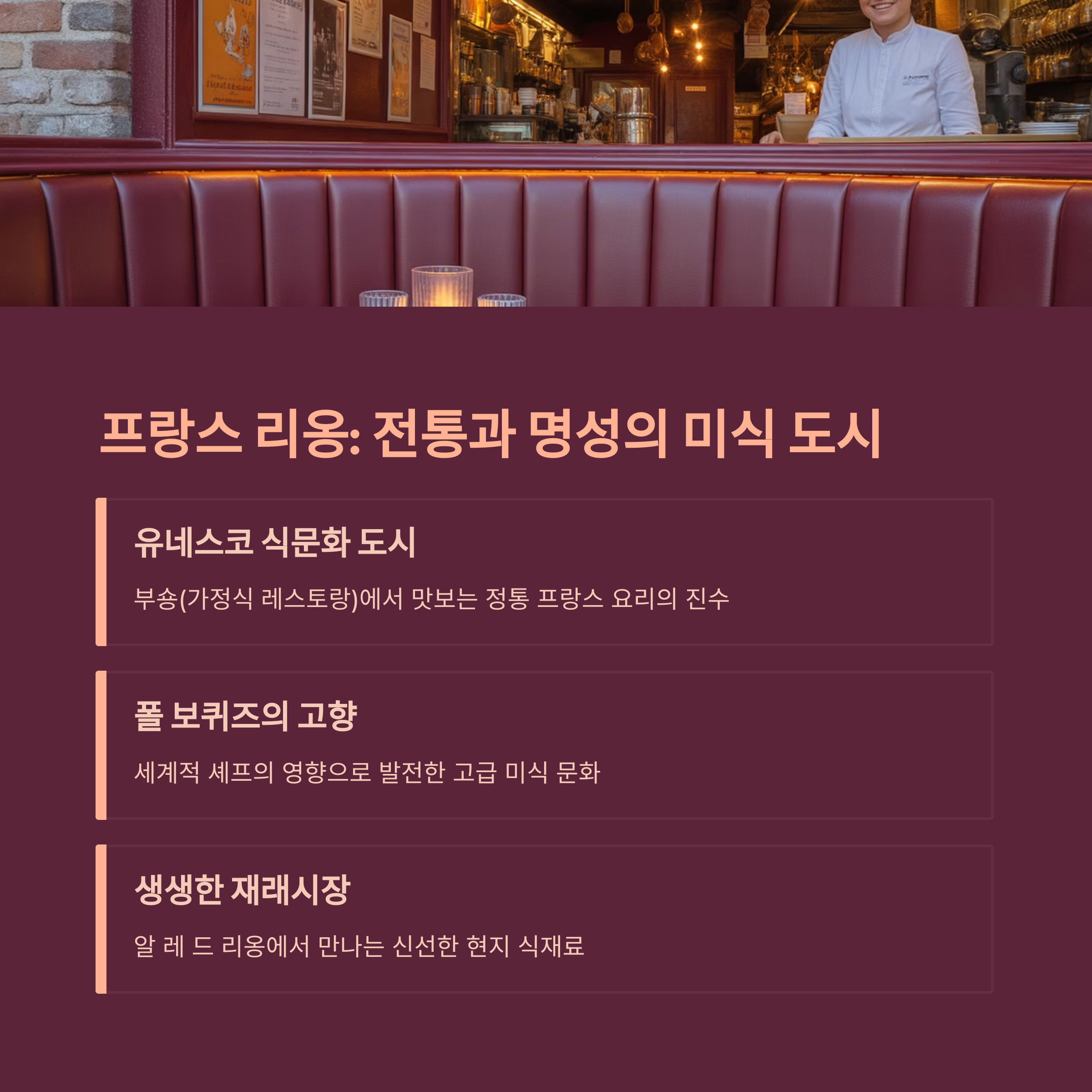 프랑스 리옹은 미식 유산으로 유명한 도시입니다. 수많은 부숑 레스토랑이 있으며, 이곳에서는 지역 전통요리인 오리 파테와 소시지를 맛볼 수 있지요. 특히 리옹의 요리는 유네스코 무형문화유산으로 등재되어 있을 정도로 전통성과 정통성을 자랑합니다. 유네스코 선정 이후 매년 수백만의 미식가들이 몰려들며, 리옹의 레스토랑들은 하루 평균 1,000명 이상의 방문객을 맞이하는 성황을 이룹니다. 리옹의 또 다른 매력적인 요소는 매년 개최되는 미식 축제입니다. 이 기간 동안 도시 전체가 요리와 음식, 그리고 와인으로 가득 차며, 방문객들에게 잊지 못할 색다른 경험을 선사합니다. 또한 리옹 중심가에는 2024년 기준, 무려 2,000여 개의 레스토랑이 포진하여 있습니다. 이런 풍부한 선택지 덕분에 매해 350만 명의 외국인 관광객이 리옹을 찾고 있습니다. 만약 당신이 프랑스 요리문화의 진수에 푹 빠지고 싶다면, 리옹은 최고의 선택일 것입니다. 리옹에서의 미식 체험을 통해 당신의 요리적 감각이 한층 더 확대될 것이며, 프랑스 전통 요리의 깊은 맛과 풍미를 몸소 느끼게 될 것입니다. 🍷